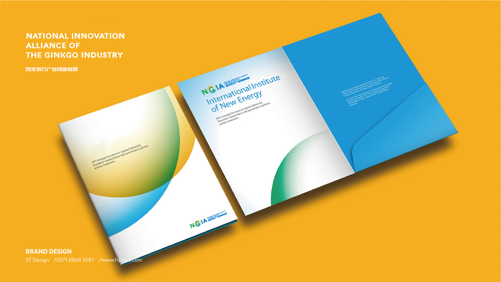 石特根據新成立的銀杏創新聯盟需求,未來發展的規模以及企業定位為其設計產業LOGO。在LOGO的設計上,以銀杏聯盟的英文縮寫“NGIA”為設計主體,表明主旨。利用大寫字母“G”的外形特點,與圖案相結合,圖案如早晨初生的太陽從高山上緩緩升起,點明銀杏創新聯盟如同太陽一般熾熱,蘊含能量,從最低處慢慢走向最高處,隱喻銀杏創新聯盟作為后起之秀的蓬勃生機。在顏色的選擇上,采用以藍色、綠色為主,橙色為輔,藍色代表天空、干凈,綠色代表森林、天然,橙色代表陽光、希望,深刻的表達出銀杏創新聯盟的初衷。