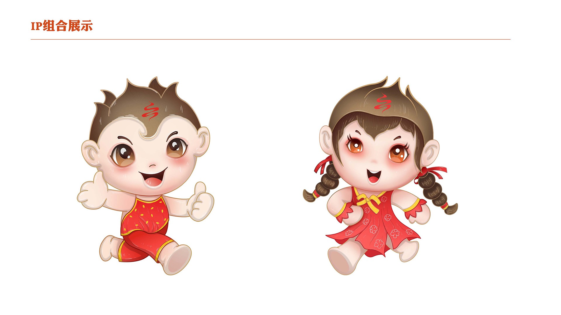 2、地域特征:從面貌出發,為冷娃的填充緋紅的臉頰,凸顯高原地勢;并給男娃設計紅肚兜以體現西北特色。