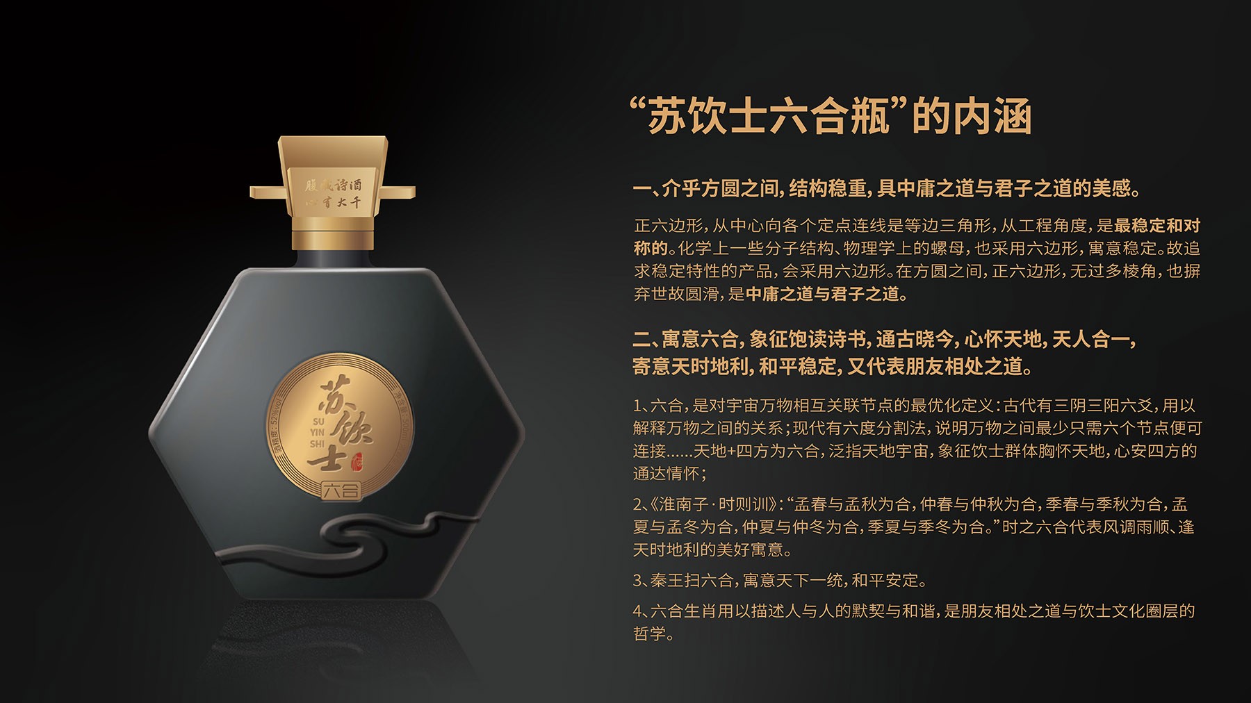 蘇飲士來自中國酒都江蘇宿遷,宿遷有著悠久的釀酒歷史和高超的制酒工藝,早在千年前,蘇軾途徑宿遷就品嘗過當地美酒,并留下詩文大肆贊美,結合蘇酒的地理區隔、蘇軾的歷史典故以及中國白酒文化的精神傳承,蘇飲士的命名由此而來,它代表著純正蘇系、蘇軾文化飲士文化的三重屬性。