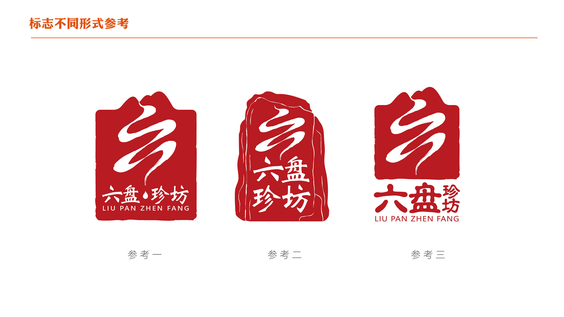 ①標志整體元素組合層級太多,視覺散亂。②標志字體常規化、記憶度不高,且字體筆畫過粗,標志縮小情況下“盤”“珍”兩字觀感不佳且不便于印刷。③標志頂部山體部分太過硬朗,和標志底部柔和線條風格差異過大,統一性不強,且硬朗的山形親和度不高。標志頂部山體太過常規化,且和六盤山山形特征差異過大,難以形成地域聯想。④標志底部線條重心靠右,導致標志整體重心不穩,且收尾部分過于尖銳,親和度不夠。⑤標志整體缺乏行業屬性,行業關聯度不高。⑥標志色彩單一,視覺張力不足。