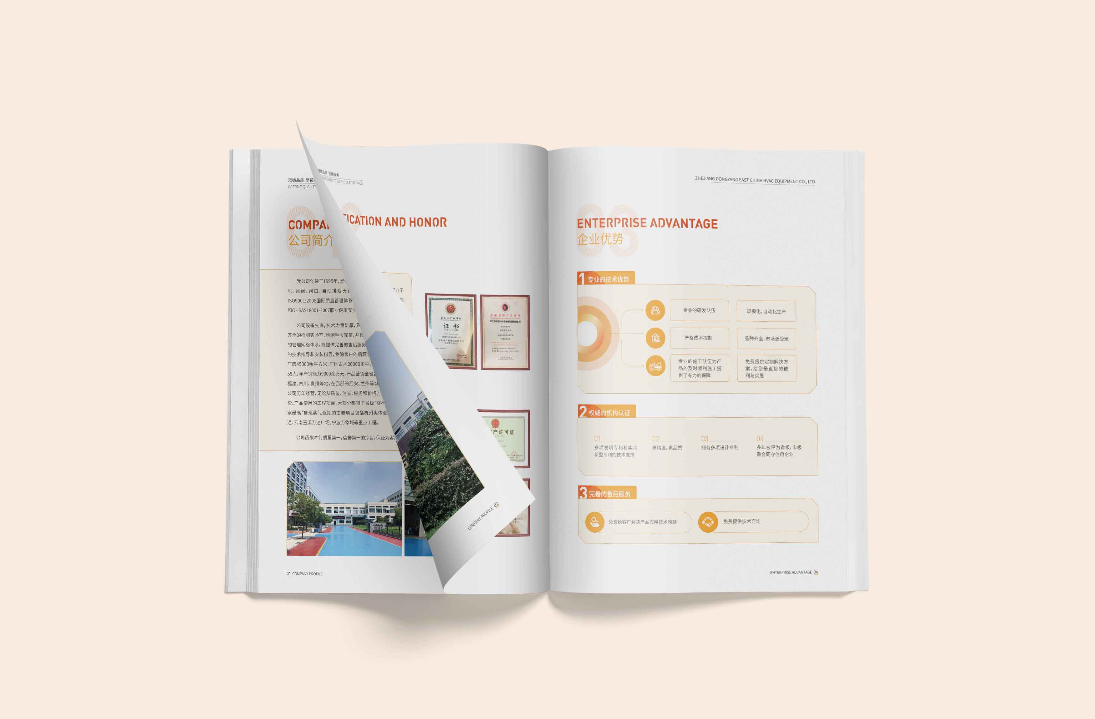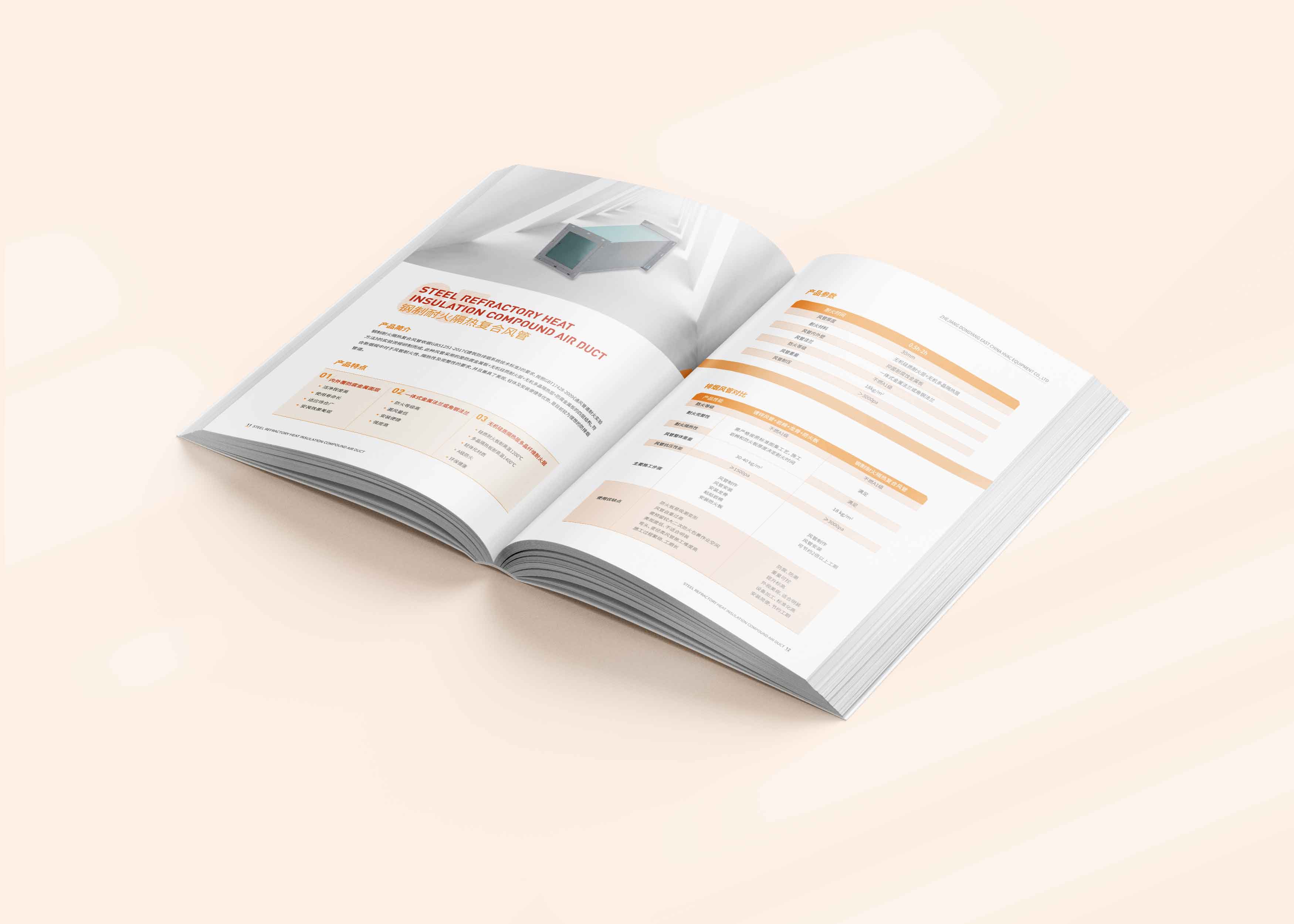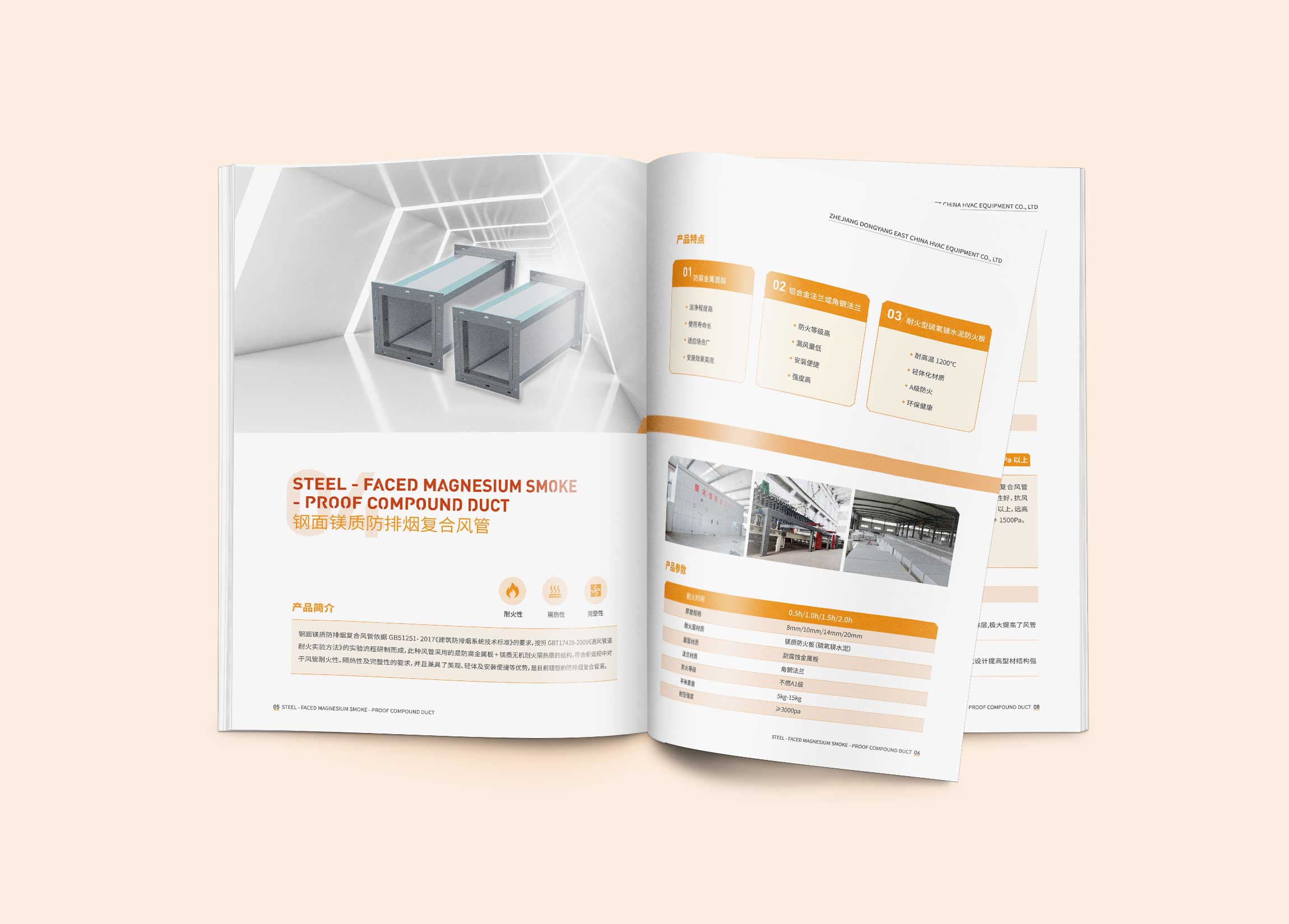 石特從公司概況、產品展示等角度著手設計華東暖通設備公司的產品宣傳冊: