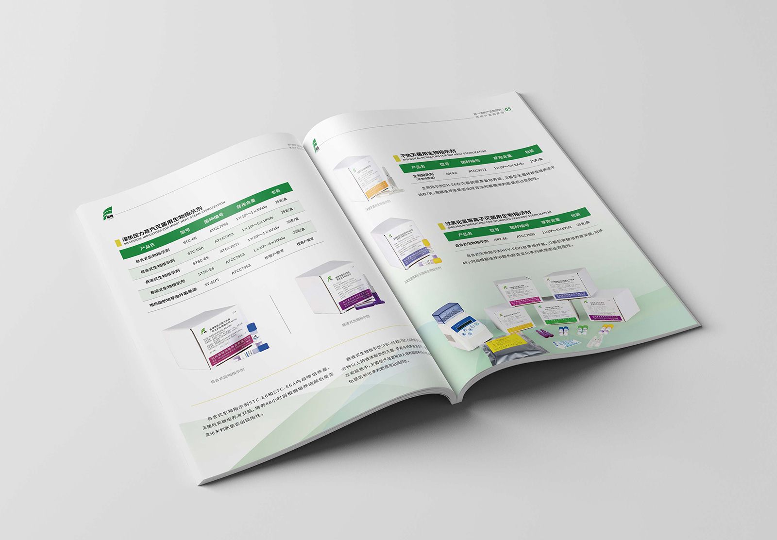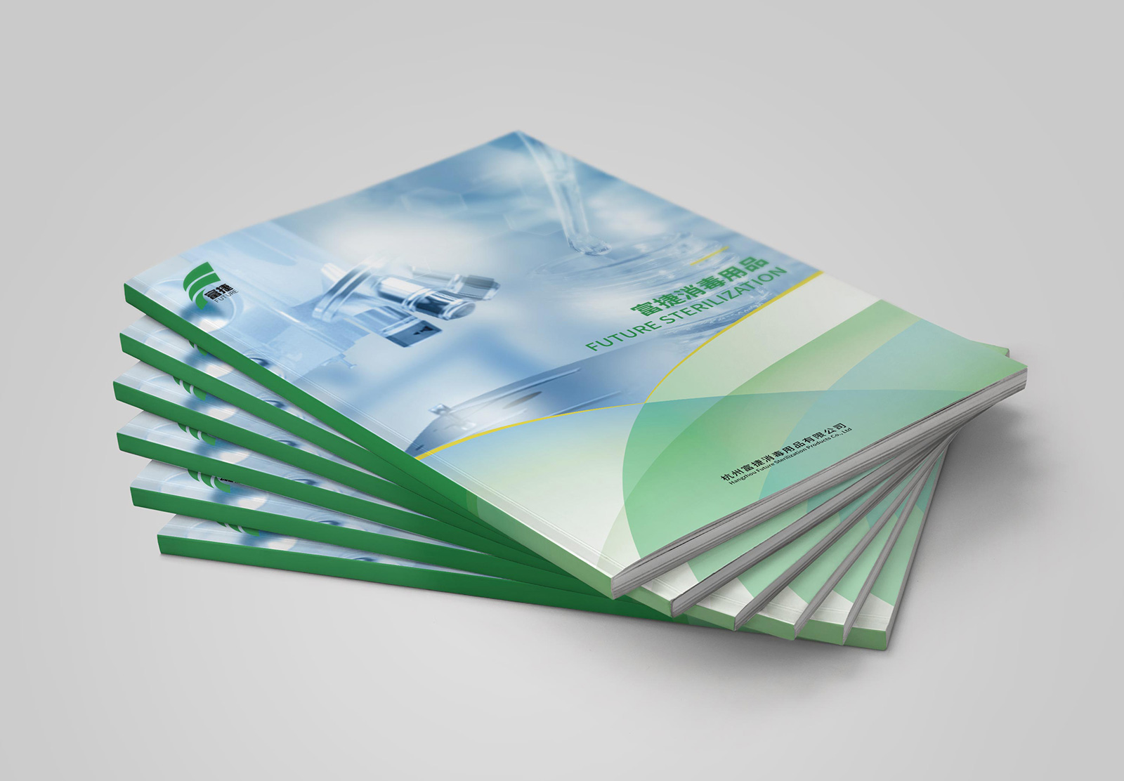 作為一家專業從事滅菌效果監測產品研發、制造和銷售的高科技企業,對其企業宣傳冊的品質有高標準要求。為使得宣傳冊滿足企業的高標準要求,發揮更好的宣傳效果,石特在對企業作了全面了解后,展開設計。在封面頁部分,以消毒的實用性場景及相關器皿用具,體現其專業性,也能讓受眾在第一時間明確企業屬性;在內容上,從不同角度對企業展開介紹,內容連貫,可讀性高;在顏色上,以綠色為主色調,一方面綠色代表“安全”“環?!薄跋M钡群x,與企業屬性契合,另一方面也與企業logo顏色呼應,宣傳更具統一性。畫冊通篇,圖文結合,主次有序,重點突出,全面展示了富捷消毒用品有限公司綜合實力。