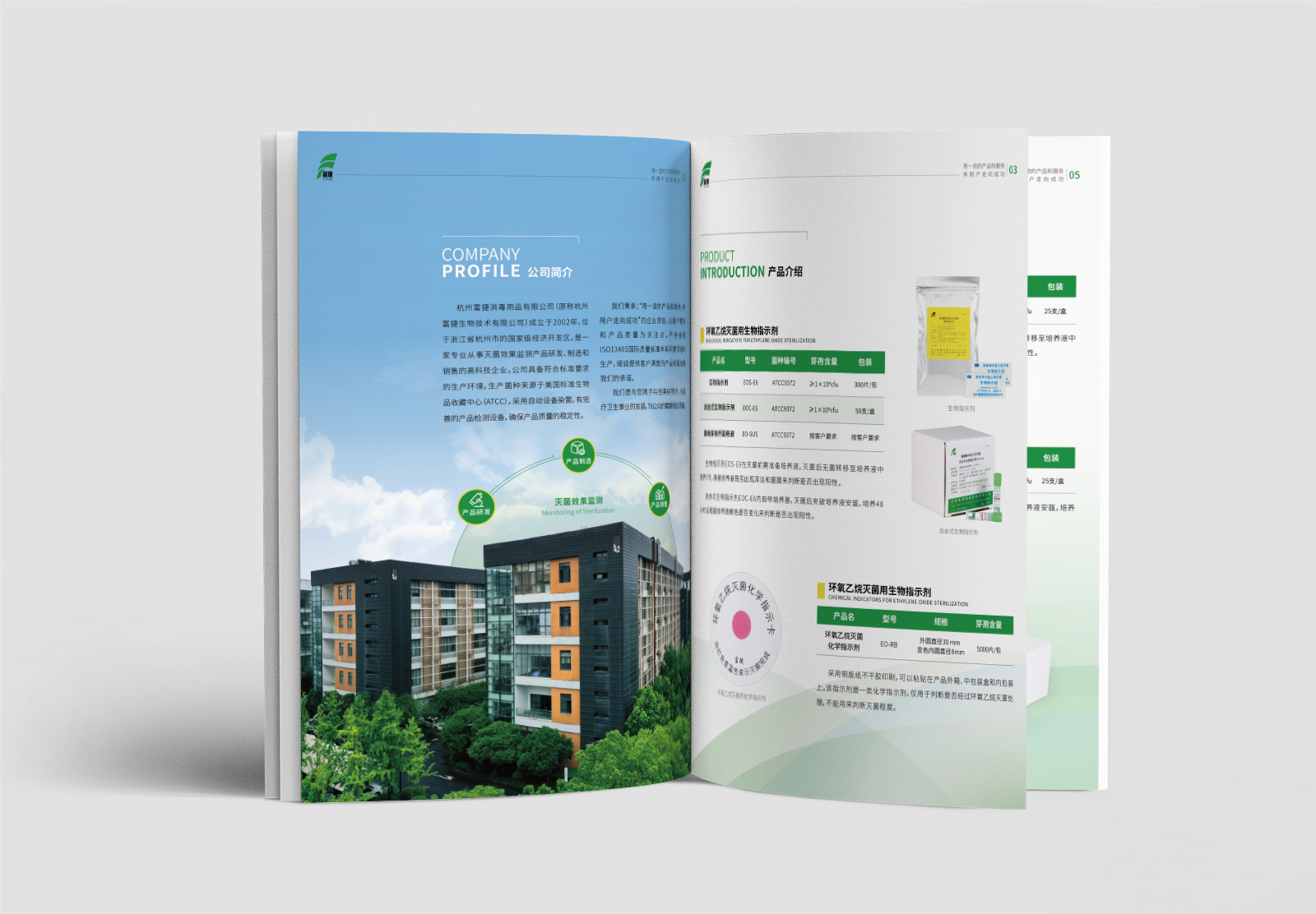 杭州富捷消毒用品有限公司成立于2002年,位于浙江省杭州市的國家級經濟開發區,是一家專業從事滅菌效果監測產品研發、制造和銷售的高科技企業。公司具備符合標準要求的生產環境,生產菌種來源于美國標準生物品收題中心(ATCC),采用自動設備染菌,有完善的產品檢測設備,確保產品質量的穩定性?,F公司有宣傳冊設計的需求,特此找到石特。