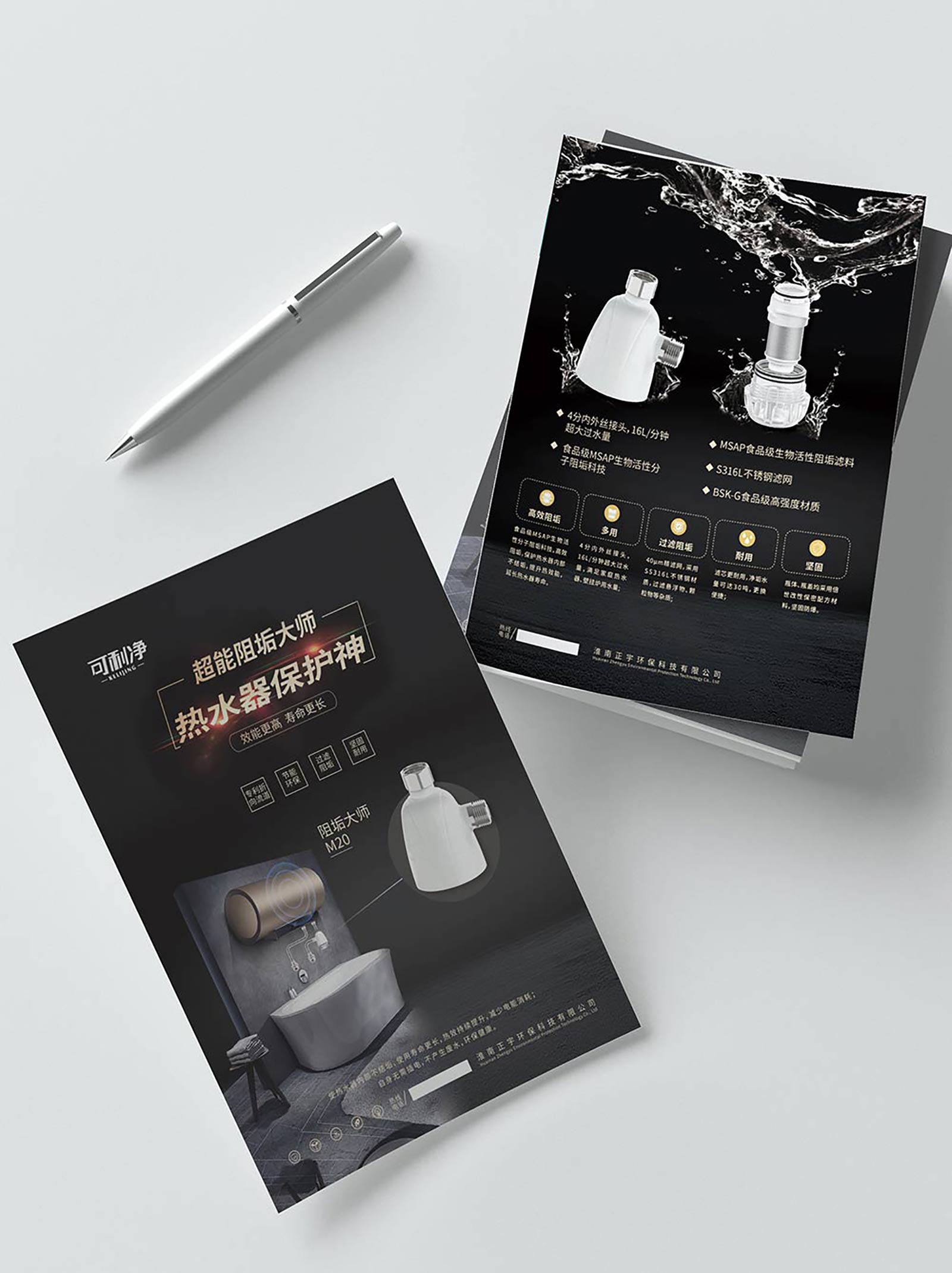 淮南正宇環??萍加邢薰?成立于2020年,經營范圍包括環保設備及配件、儀器儀表技術開發、技術服務、生產及銷售,環保產品,電氣設備、化工產品的銷售,代理貨物及技術進出口。正宇公司成立后找到石特,對公司品牌名進行LOGO設計和產品宣傳頁設計,要求展示產品的阻垢優勢。