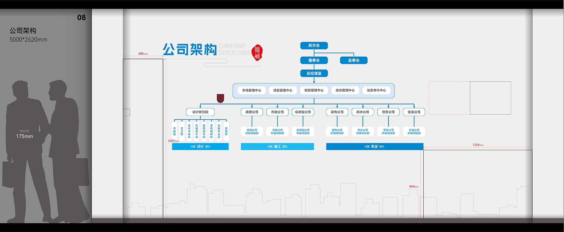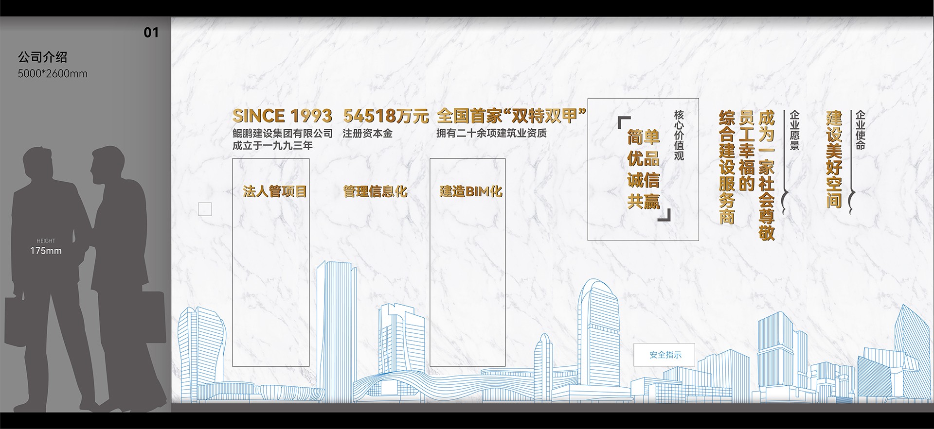 在建筑行業,企業文化墻不僅是展示企業形象、傳遞企業精神的重要載體,也是增強員工歸屬感、激發團隊凝聚力的重要途徑。本解決方案旨在通過精心設計的文化墻,展現建筑企業的獨特魅力、發展歷程、核心價值觀、成就榮譽及未來愿景,打造一個既美觀又富有內涵的企業文化展示空間。