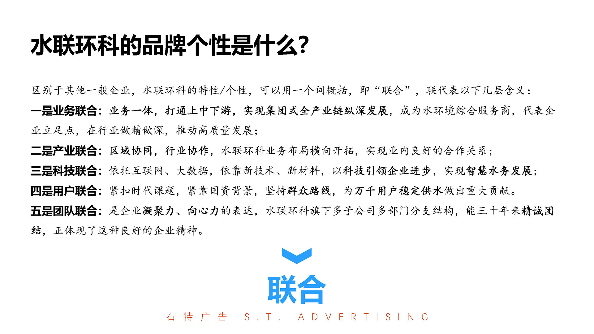 浙江水聯環科集團有限公司作為紹興市公用事業集團直屬的國有控股企業,深耕供排水物資經營、不銹鋼復合管生產及設備集成總包領域20余年,銷售網絡覆蓋省內外,近3年年均銷售收入達6.5億元,并獲評浙江省守合同重信用3A級單位、國家高新技術企業等榮譽。面對行業競爭加劇與可持續發展需求,石特廣告策劃團隊以“科技賦能水務,綠色驅動未來”為核心理念,為其量身定制品牌全案升級方案,涵蓋調研分析、品牌定位、品牌DNA重構、廣告語提煉、VI視覺識別系統設計及宣傳畫冊策劃,助力企業從傳統制造向科技化、綠色化品牌轉型,強化行業標桿地位。