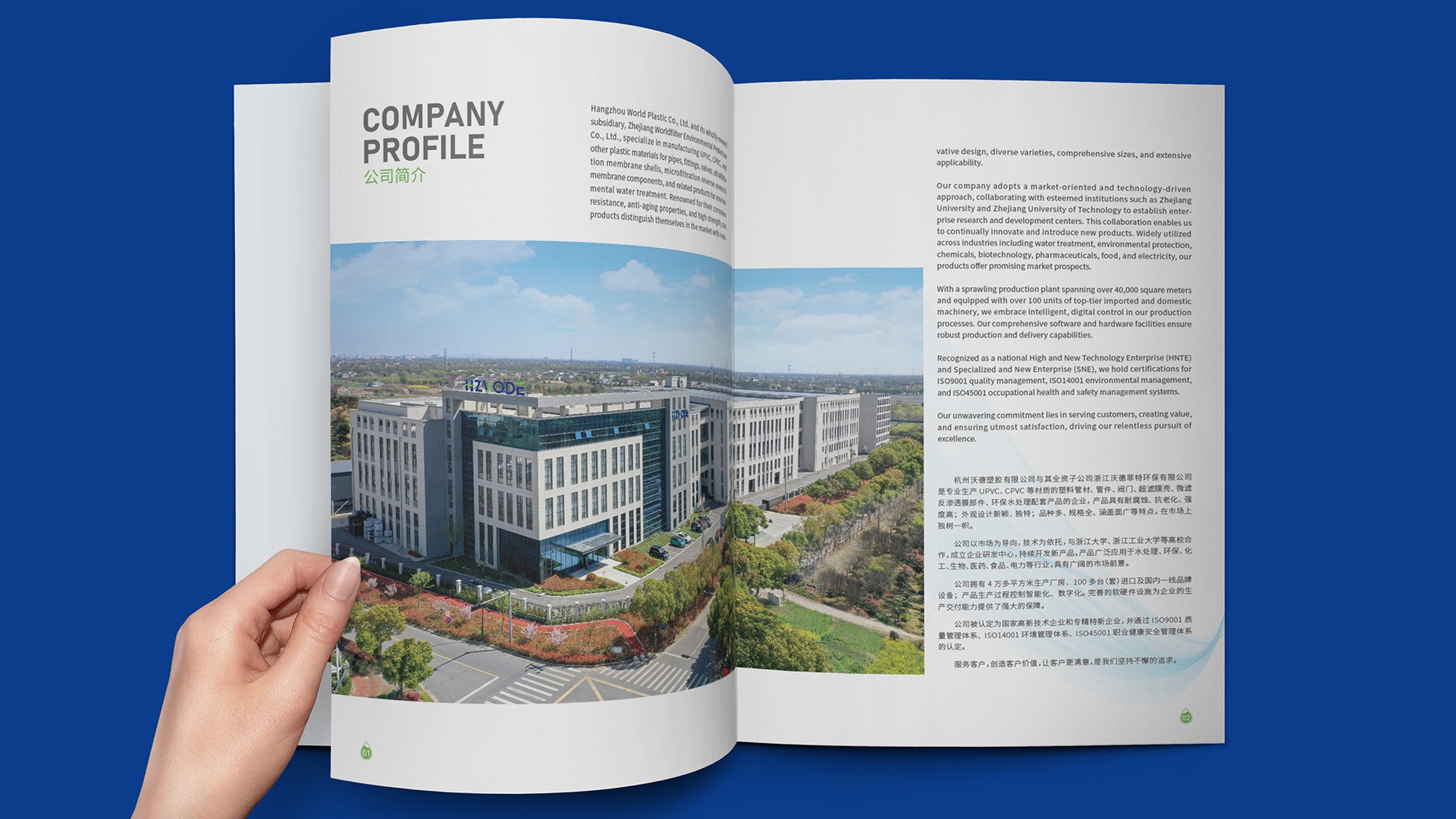 • 設計風格把控:整體采用國際流行的簡約設計風格,以白色為底色,搭配清新的藍色作為輔助色調,營造出專業、科技、環保的視覺感受。在排版上,注重圖文比例協調,運用大量留白凸顯重點內容。選用具有國際通用性的字體,確保英文文字的可讀性。對于產品圖片,通過專業攝影與后期精修,展現產品的質感與細節,提升畫冊的整體品質,契合國際市場審美。