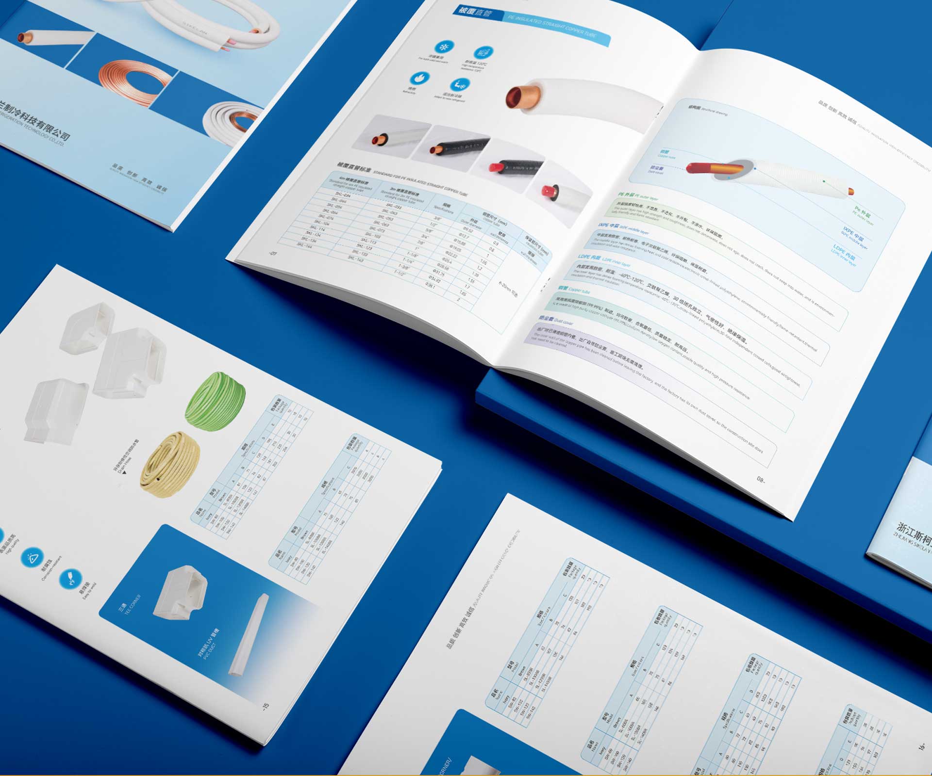 冷色系專業視覺設計: 設計上緊扣行業屬性,主色調采用代表制冷、科技與專業的藍色系及灰色系,營造冷靜、可靠、高效的視覺氛圍。運用清晰的信息圖表、技術參數對比表及系統原理示意圖,將復雜的制冷循環、能效數據等轉化為易于理解的視覺語言。