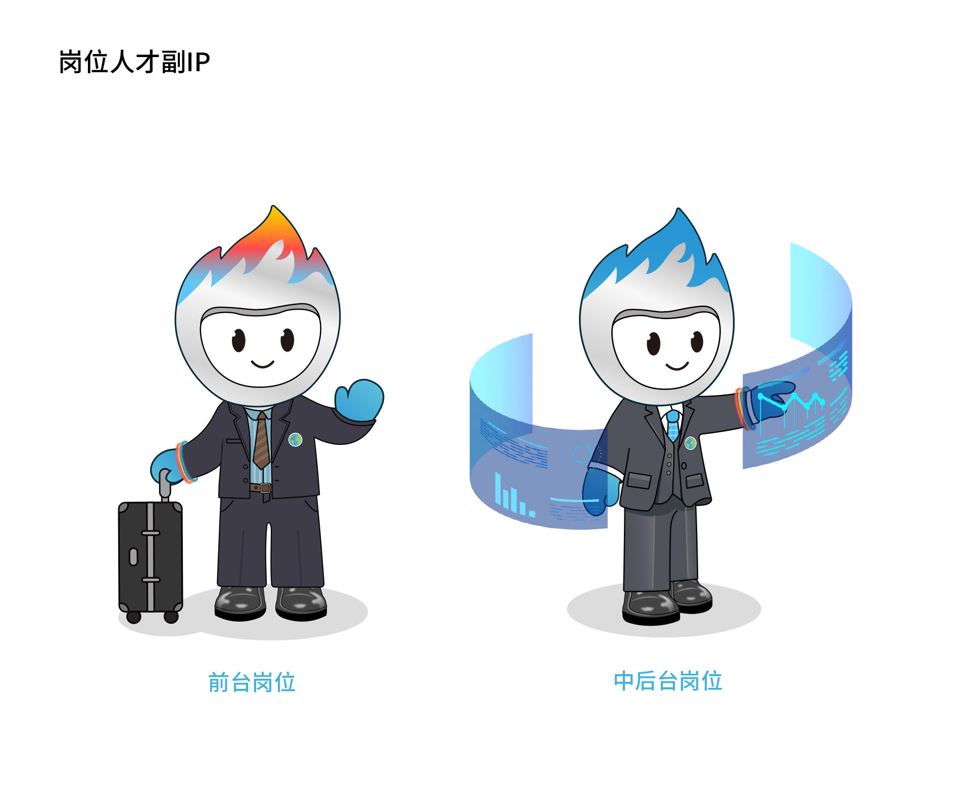 3. 崗位副IP與功能副IP體系構建: 基于企業的組織架構與價值導向,我們延展設計了前臺崗位中后臺崗位兩類崗位副IP,以及代表專業精進全面發展的功能副IP。這一體系化的設計,使IP能夠覆蓋企業不同場景、不同層級的溝通需求,極大提升了IP的應用廣度與文化承載力。