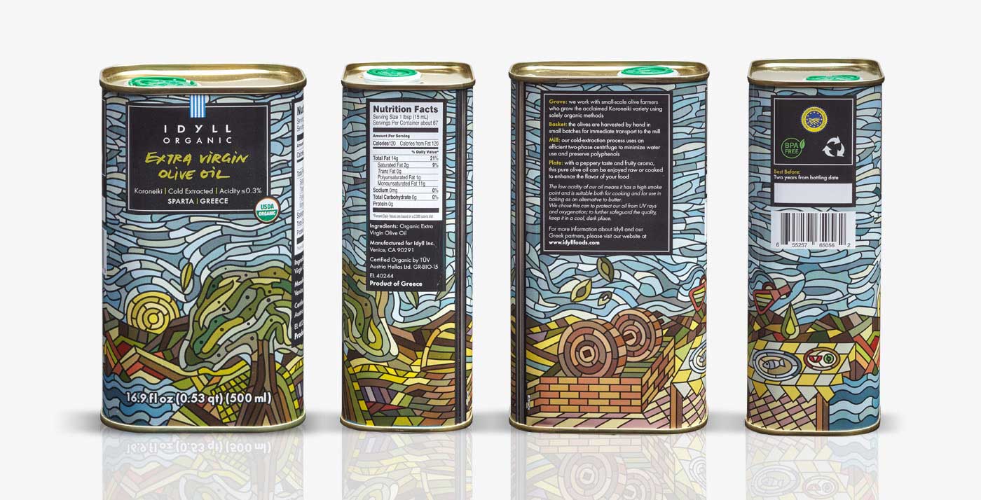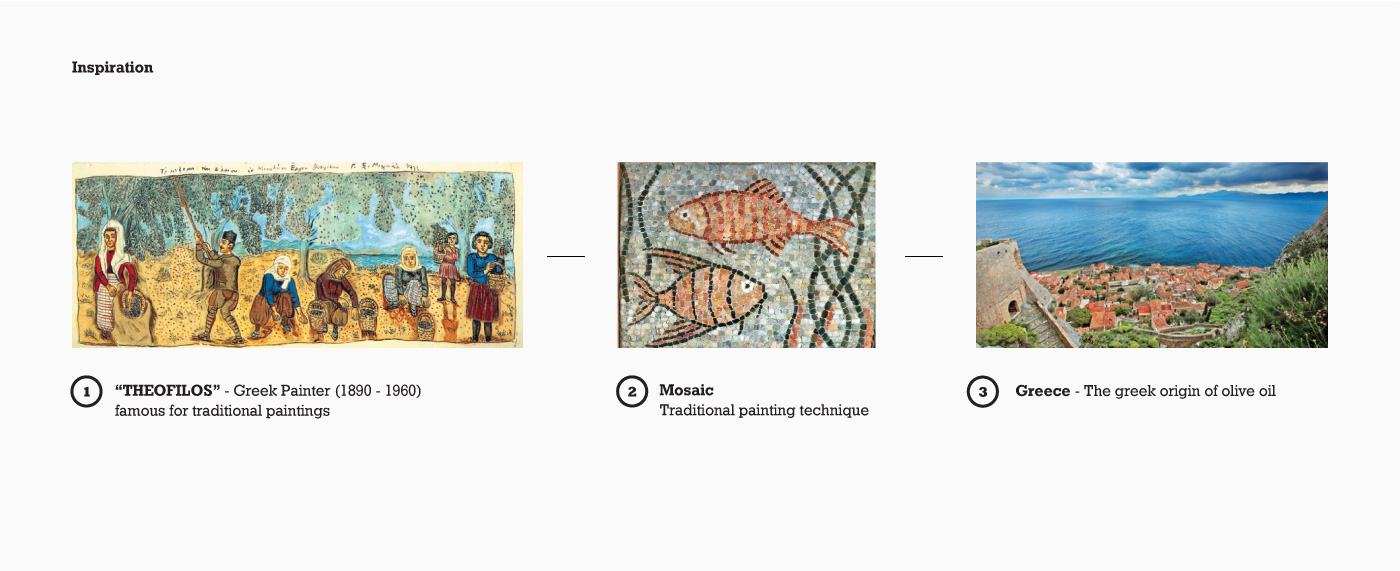 隨著社會工作的壓力增大,以及城市社會經濟的高速運轉,城市的人越來越渴望能夠得到一份田園的安寧。我們基于這樣的市場需求,設計了一款田園插畫風格的橄欖油包裝,以求給予人們心理的慰藉,達到情感的共鳴。從遠遠的看過去,完全脫離了傳統的 橄欖油包裝設計,應該說是脫離了你對包裝設計的認知。對,他就是一幅畫面,一份抽象的作品,這樣的商品,會有人不喜歡嗎?