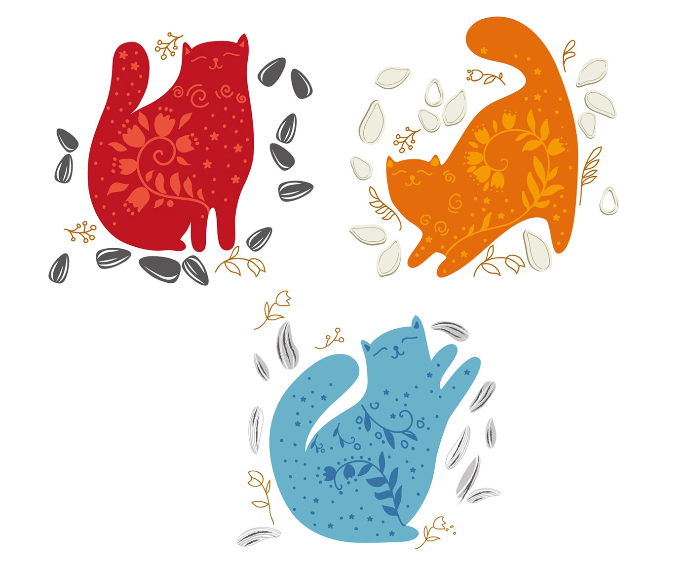 這款貓糧的包裝設計采用傳統的俄羅斯風格插圖,將有助于避免競品之間的混淆,將會讓消費者的眼睛在商店的貨架上更容易找見你。貓糧的包裝設計不就是這個用途嗎?