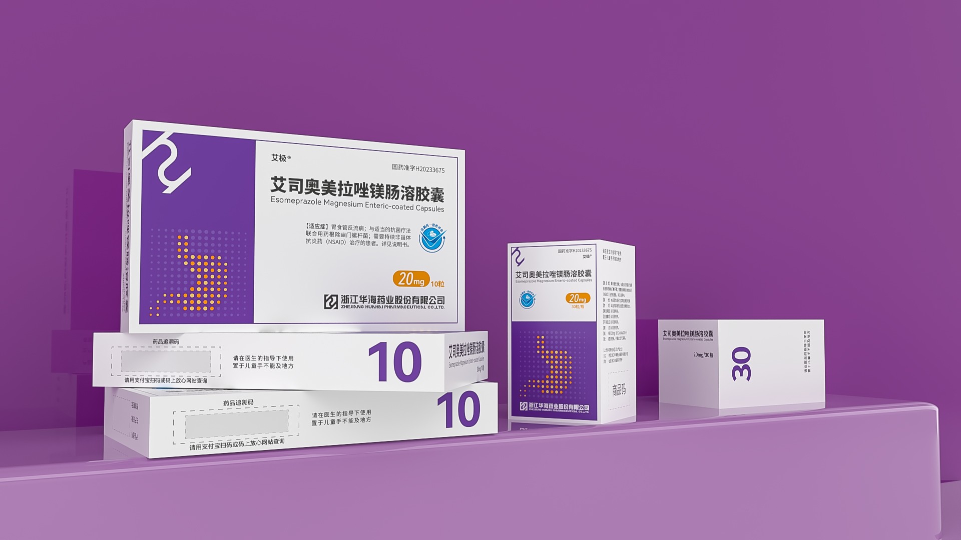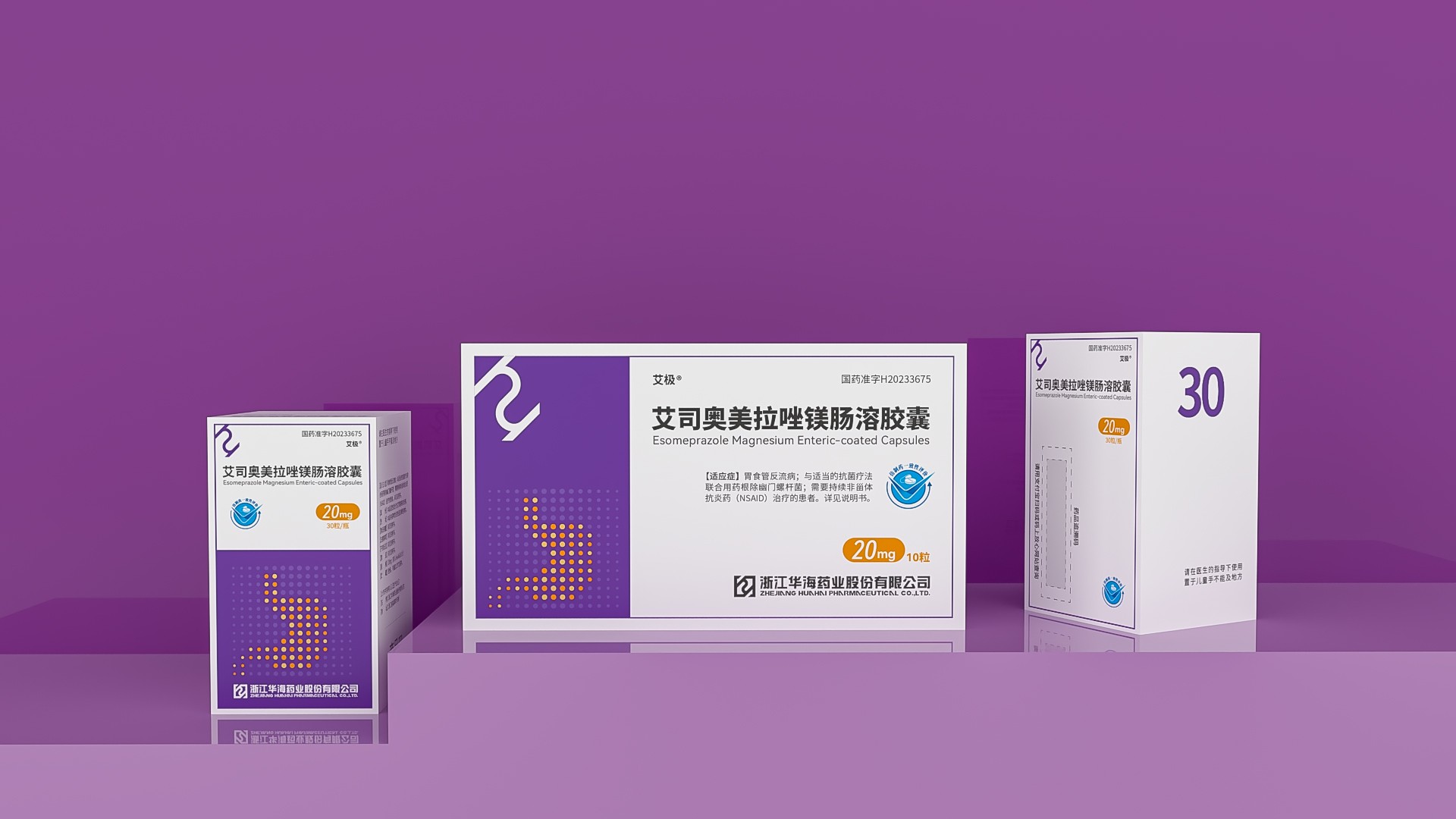 華海藥業奧美拉咄鎂腸溶膠囊包裝設計
