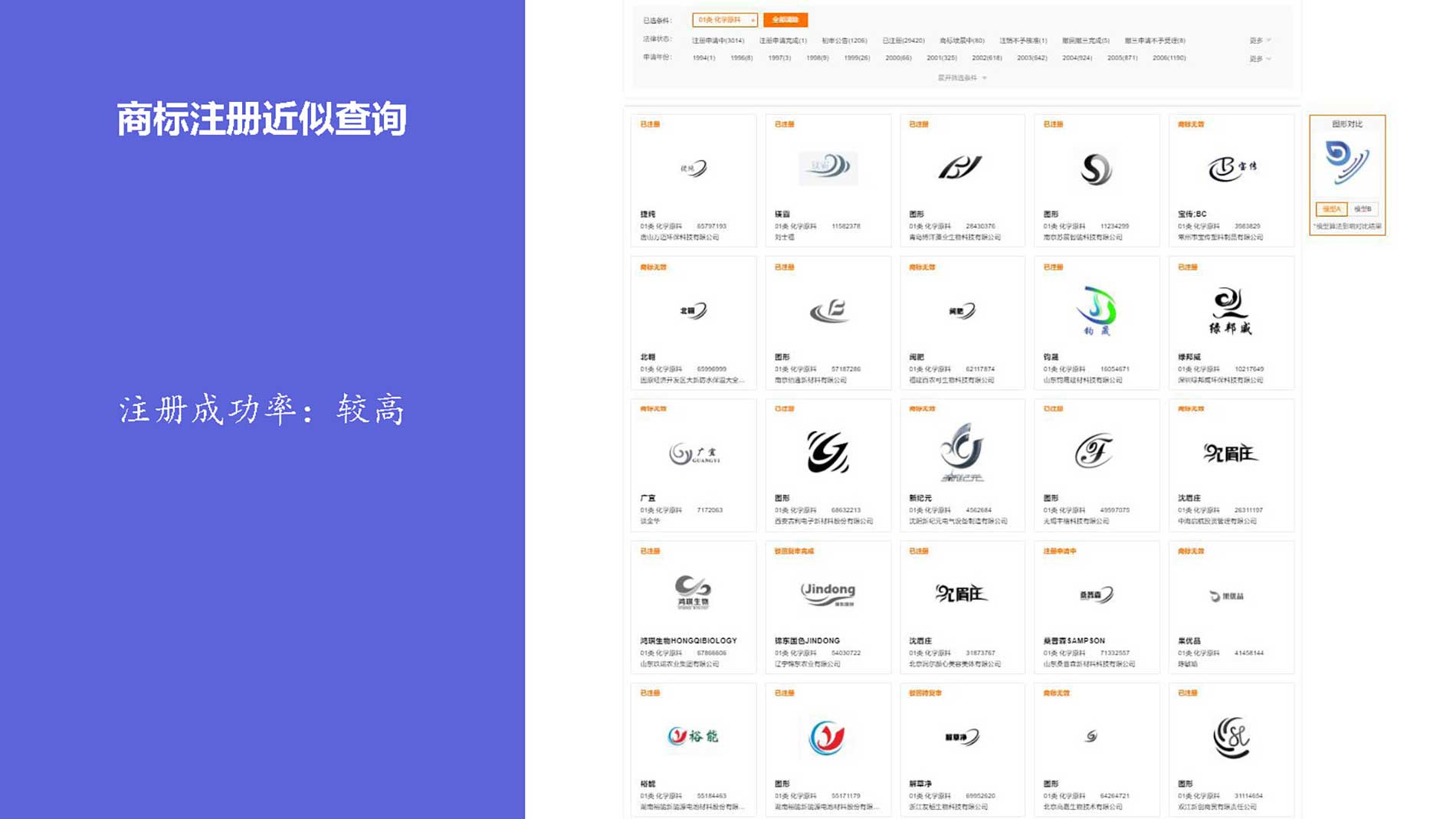 2、創新科技,精準靶向:標志水滴和水紋的位置相向對立,正中中心,代表產品應用領域術業專精,代表產品靶向治療的效果顯著;標志整體打破常規,向左傾斜45°,代表企業大膽創新,從形式上看也更加具備速度感與力量感,整體視覺張力強烈,差異化明顯。