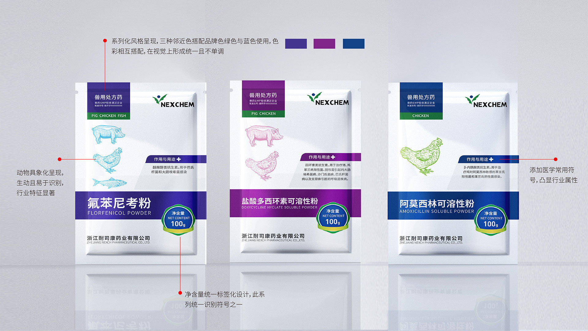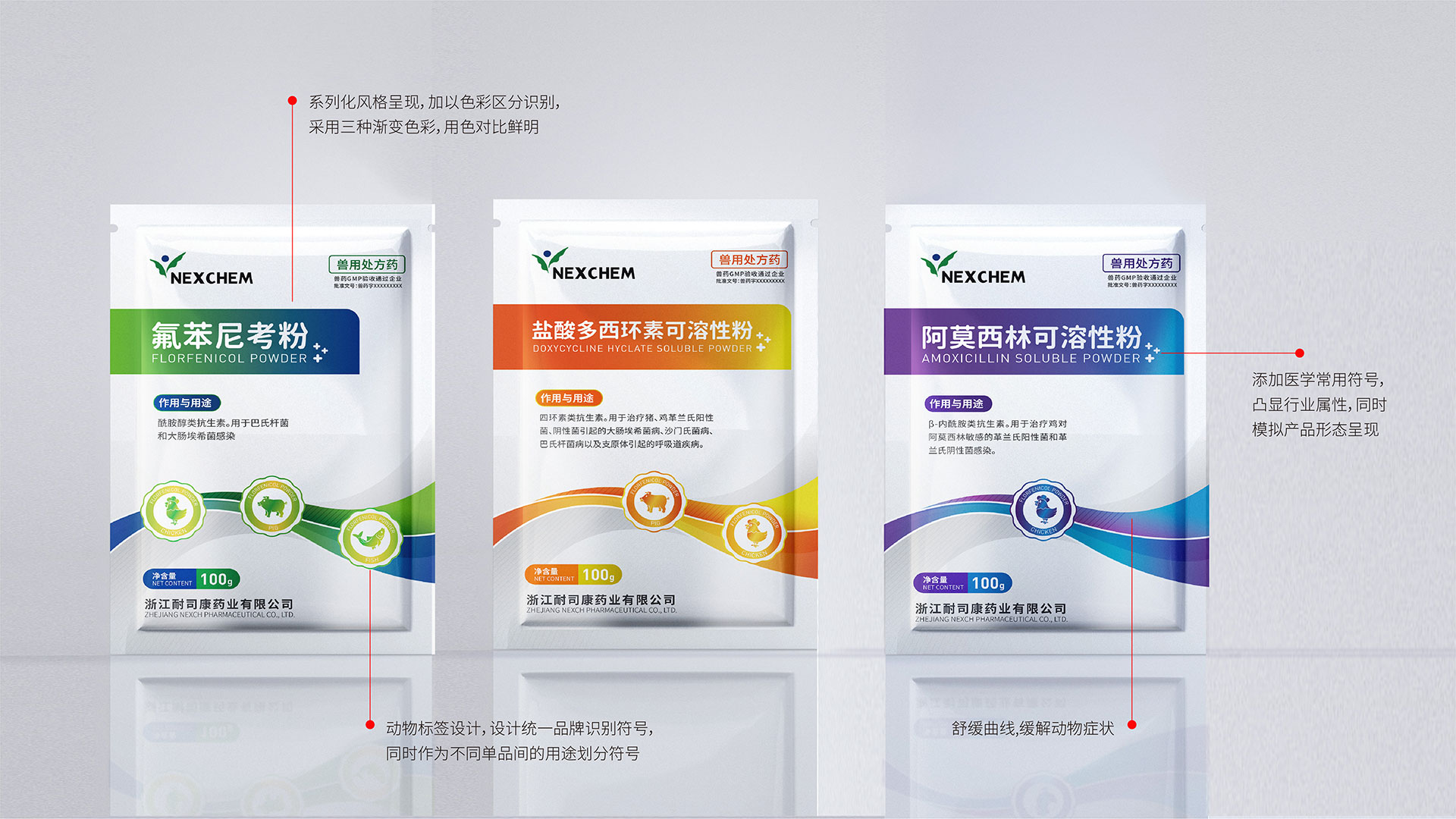 服務項目:獸藥包裝袋設計,系列獸藥產品包裝設計,獸藥包裝盒設計