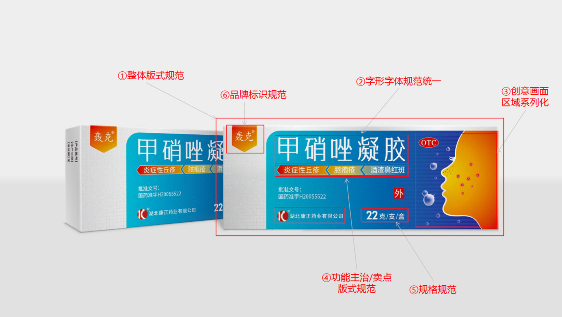 統一企業品牌形象,強化系列單品識別;各大系列在企業品牌統一視覺基調上進行設計,強化品牌識別度。根據產品功能功效、作用部位、受眾人群,基于藥品屬性和人視覺、心理需求,通過醒目悅目的色彩和輔助圖形創意,對藥品分門別類,提高系列識別與單品辨識度。達到科學美觀、清晰易辨的效果。
