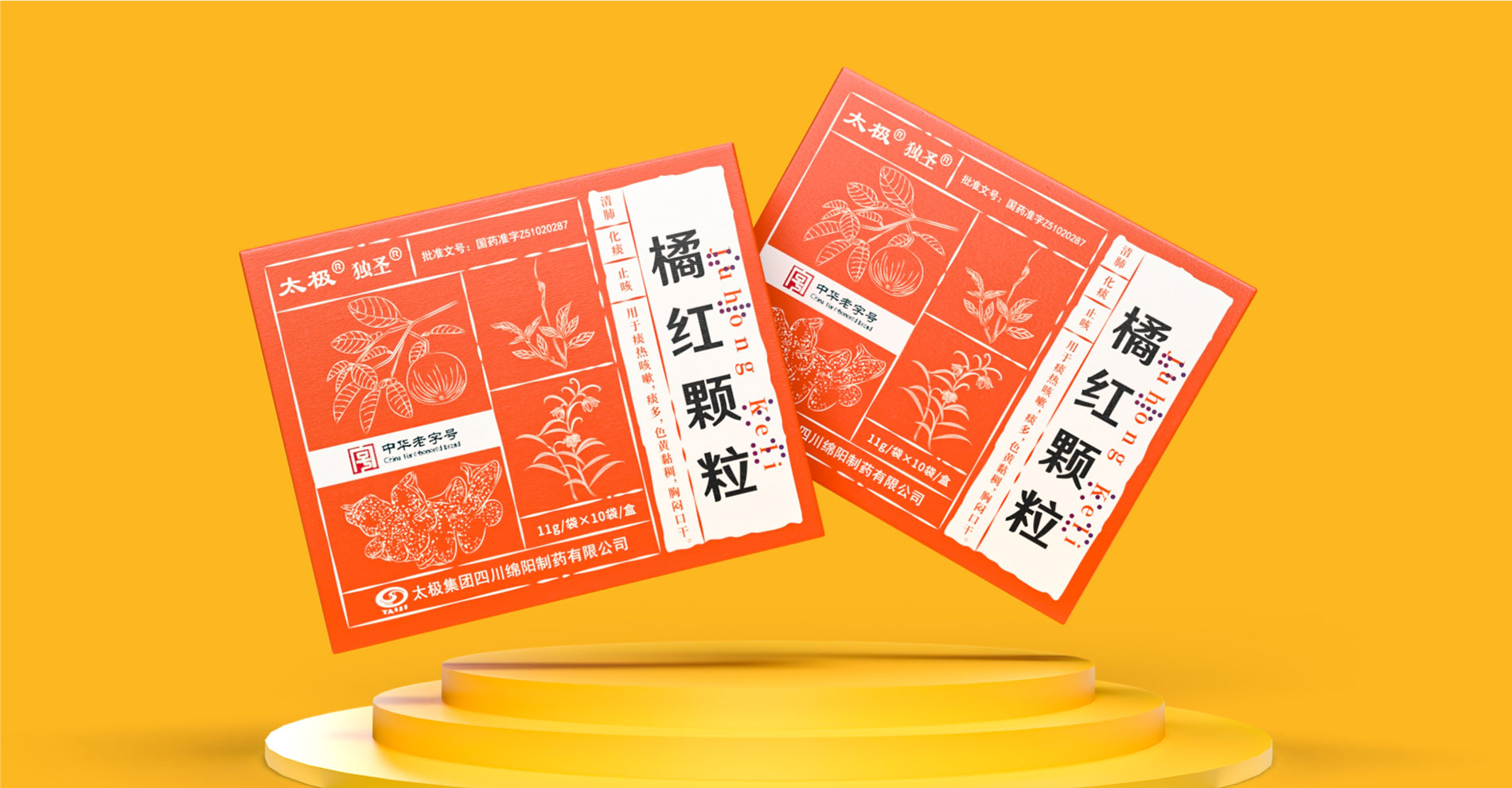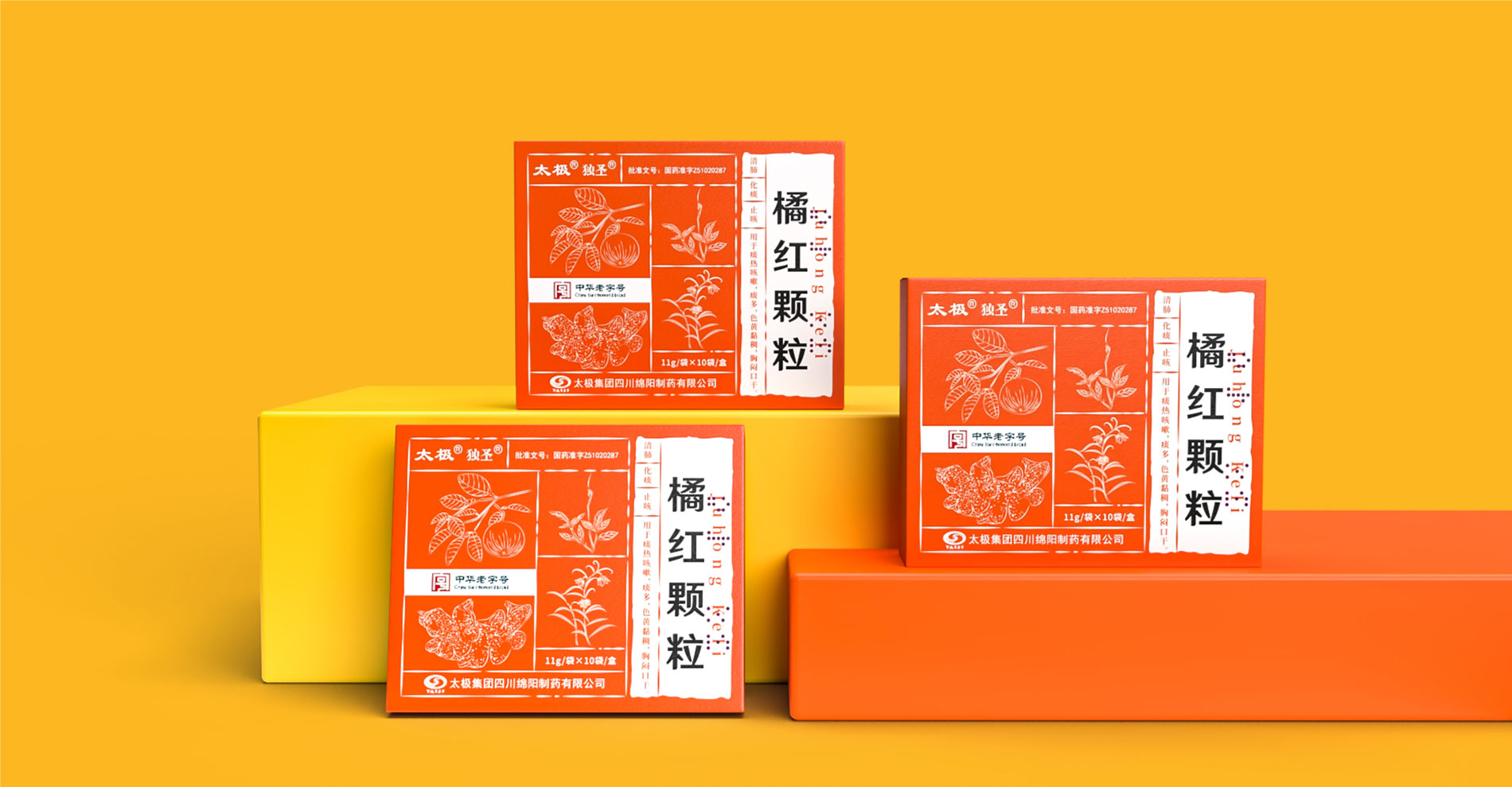“橘紅顆粒”作為中華老字號的中成藥,其包裝設計充分融合了傳統與現代元素,既展現了藥品的深厚文化底蘊,又體現了現代審美觀念。在色彩選擇上,包裝采用了鮮明的橙色背景,象征著活力與健康,同時也與中藥的溫暖屬性相契合。白色圖案和文字在橙色背景的映襯下更加醒目,使得包裝信息一目了然。