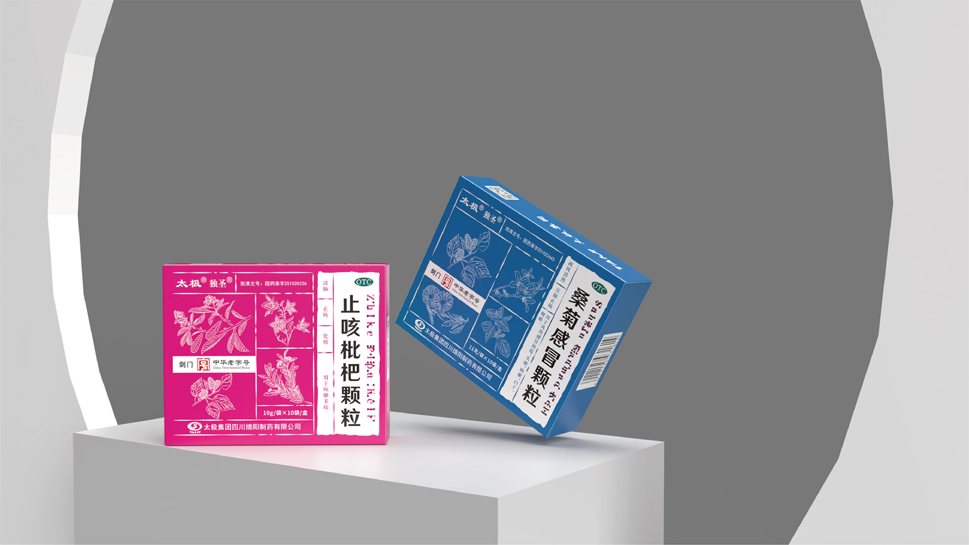 圖案設計上,包裝巧妙地運用了植物元素,一朵花、一片葉子和一個果實的組合,不僅美觀大方,而且寓意著中藥來源于自然、回歸自然的理念。這些圖案與“橘紅顆?!钡拿Q相呼應,強化了產品的中草藥特性。