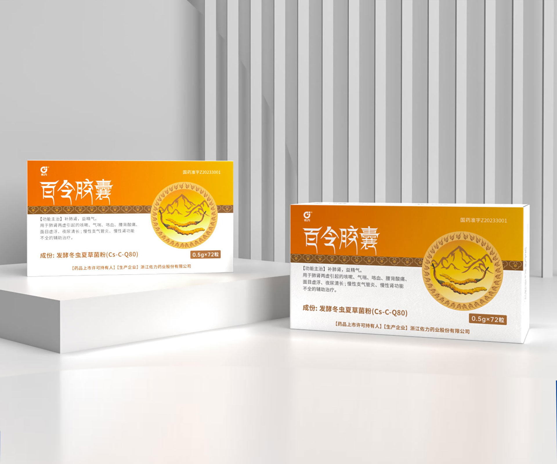 百令膠囊【功能主治】補肺腎,益精氣。用于肺腎兩虛引起的咳嗽、氣喘、咯血、腰背酸痛、面目虛浮、夜尿清長;慢性支氣管炎、慢性腎功能不全的輔助治療。藥品包裝設計公司,OTC藥品包裝設計公司,醫藥品牌設計公司,醫藥包裝設計公司,處方藥包裝設計公司,保健品包裝設計公司,藥品包裝設計公司,滋補品包裝設計公司,醫療器械包裝設計公司,中藥外盒包裝設計公司,保健品包裝設計公司