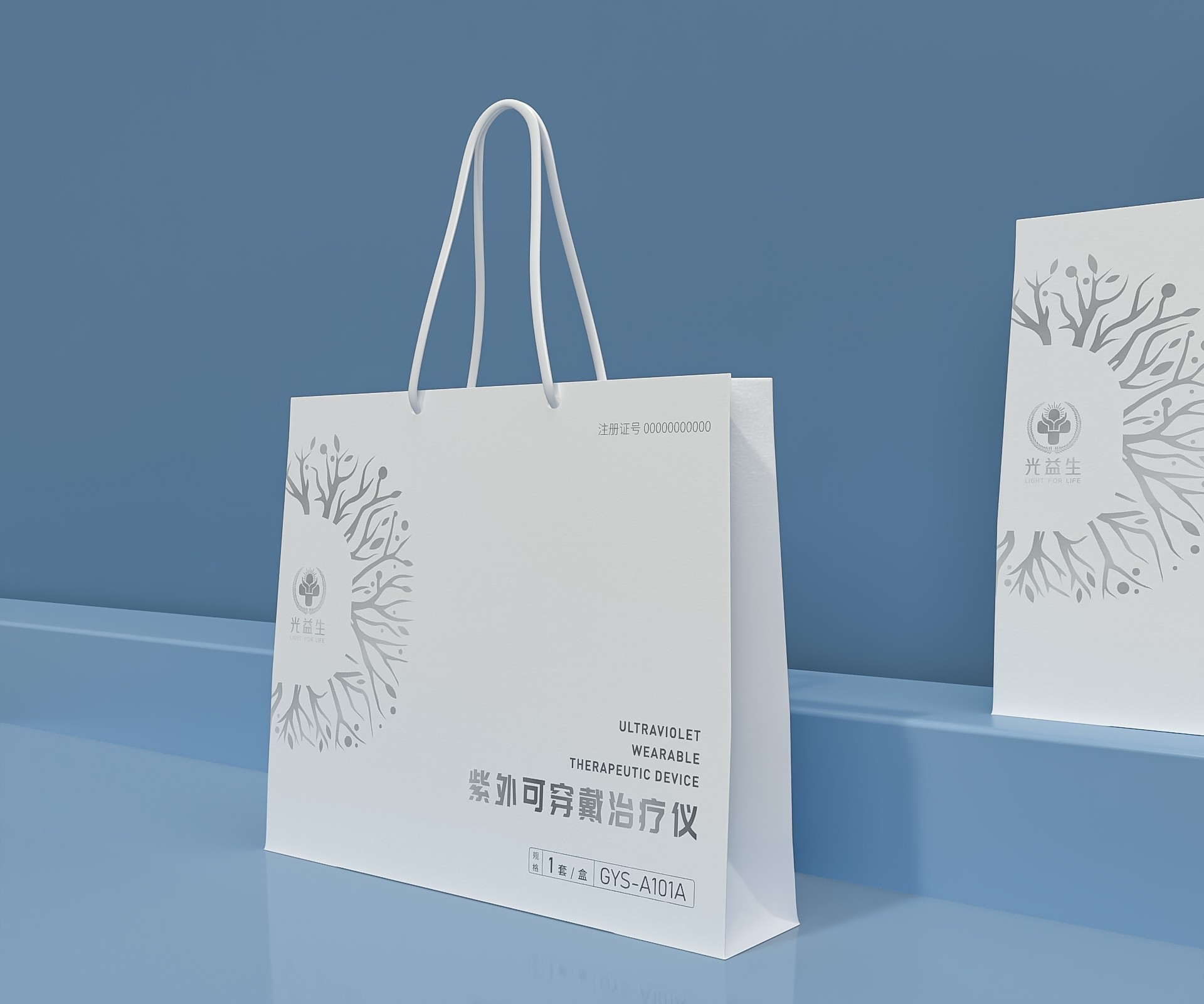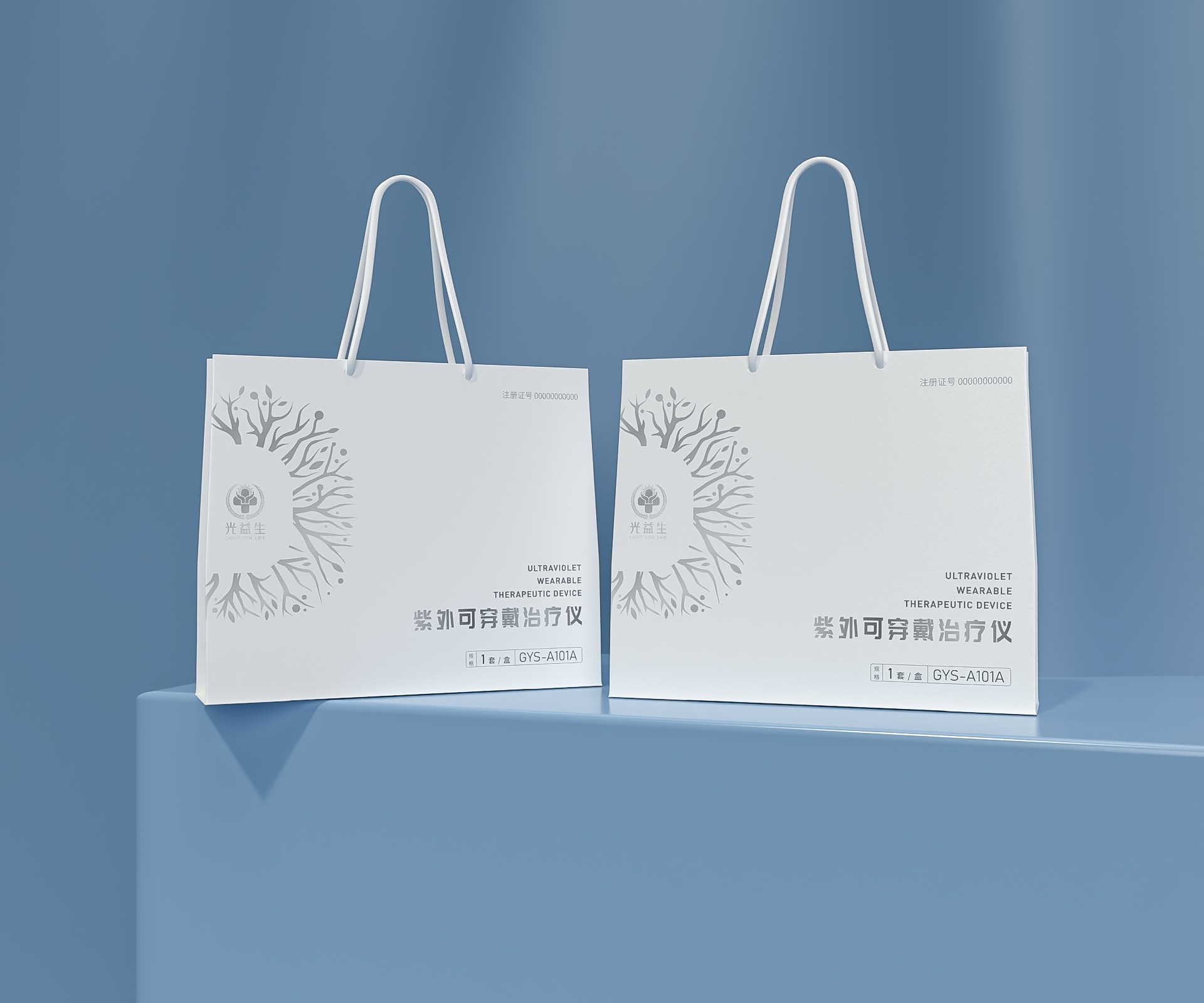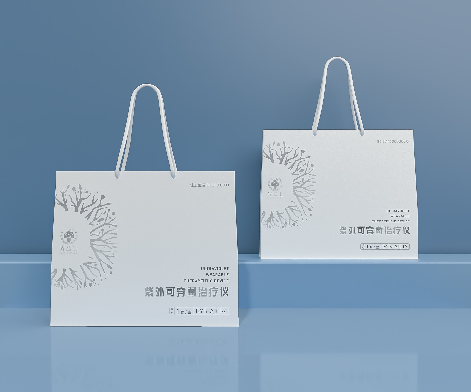 紫外可穿戴治療儀的包裝設計旨在體現產品的專業性、科技感和便捷性。設計以產品的核心功能——紫外線治療為基礎,結合現代簡約風格,打造出既符合醫療設備規范,又易于攜帶和使用的包裝。