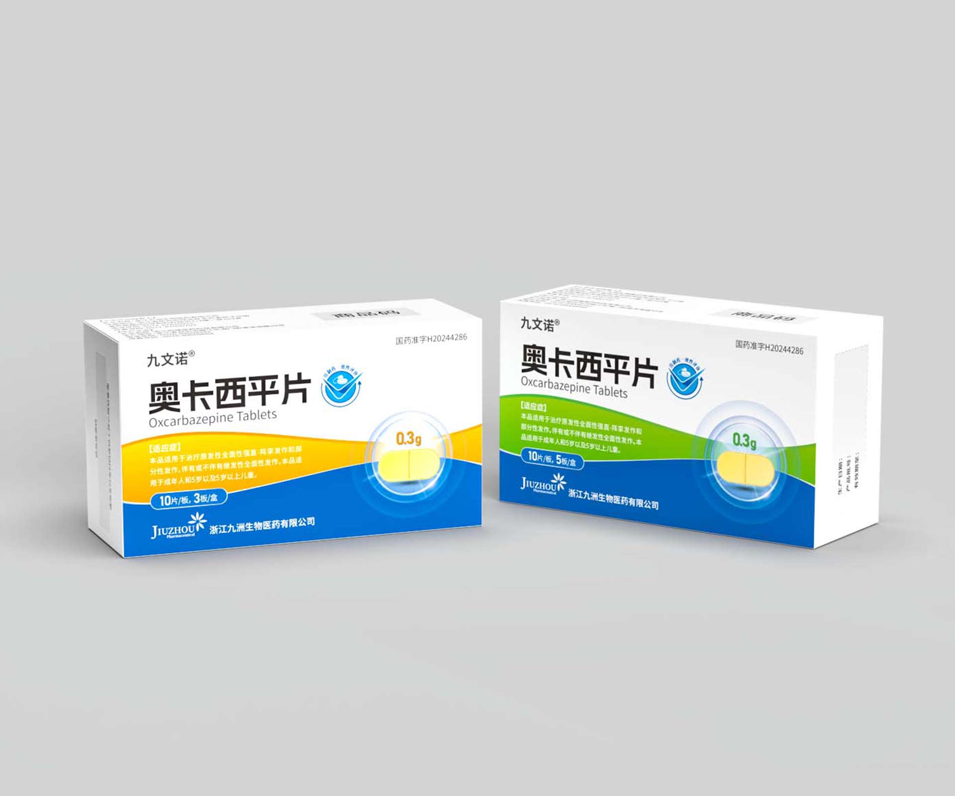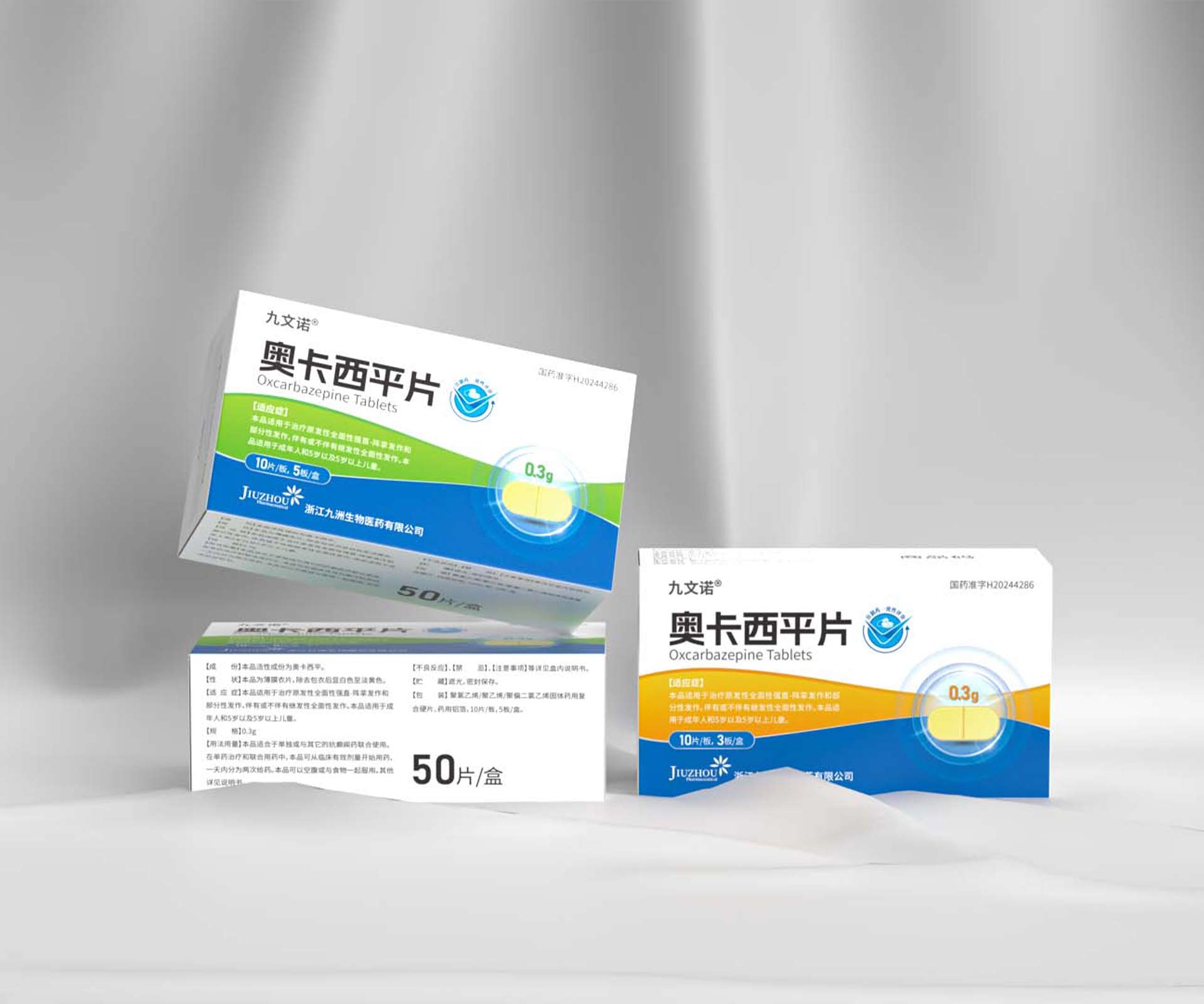 三、品牌形象與定位    奧卡西平片的包裝設計在品牌形象塑造方面也做得相當出色。通過簡潔明快的色彩搭配和清晰醒目的信息呈現,該藥品成功塑造了一個專業、可靠的品牌形象。同時,包裝盒上的“浙江九洲生物醫藥有限公司”字樣也進一步強調了產品的生產背景和品質保障。    在定位方面,該藥品的包裝設計充分考慮了目標消費者的需求和心理預期。通過突出產品的核心特點和優勢(如適應癥、用法用量等),該藥品成功吸引了目標消費者的關注,并激發了他們的購買欲望。