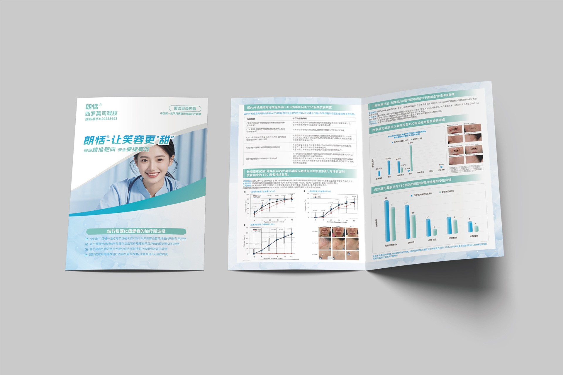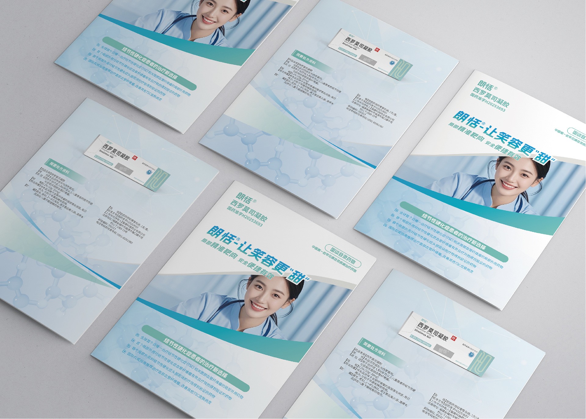 石特大健康受福建瑞科藥業委托,為其郎恬?西羅莫司凝膠產品設計了專業的DA(Detail Aid)折頁。DA是醫藥領域重要的學術推廣工具,用于向醫療專業人士清晰、準確地傳遞產品核心信息。本項目旨在通過精準的視覺表達和結構化的信息設計,突出郎恬?產品的臨床優勢和專業形象,支持其市場推廣和醫學溝通。