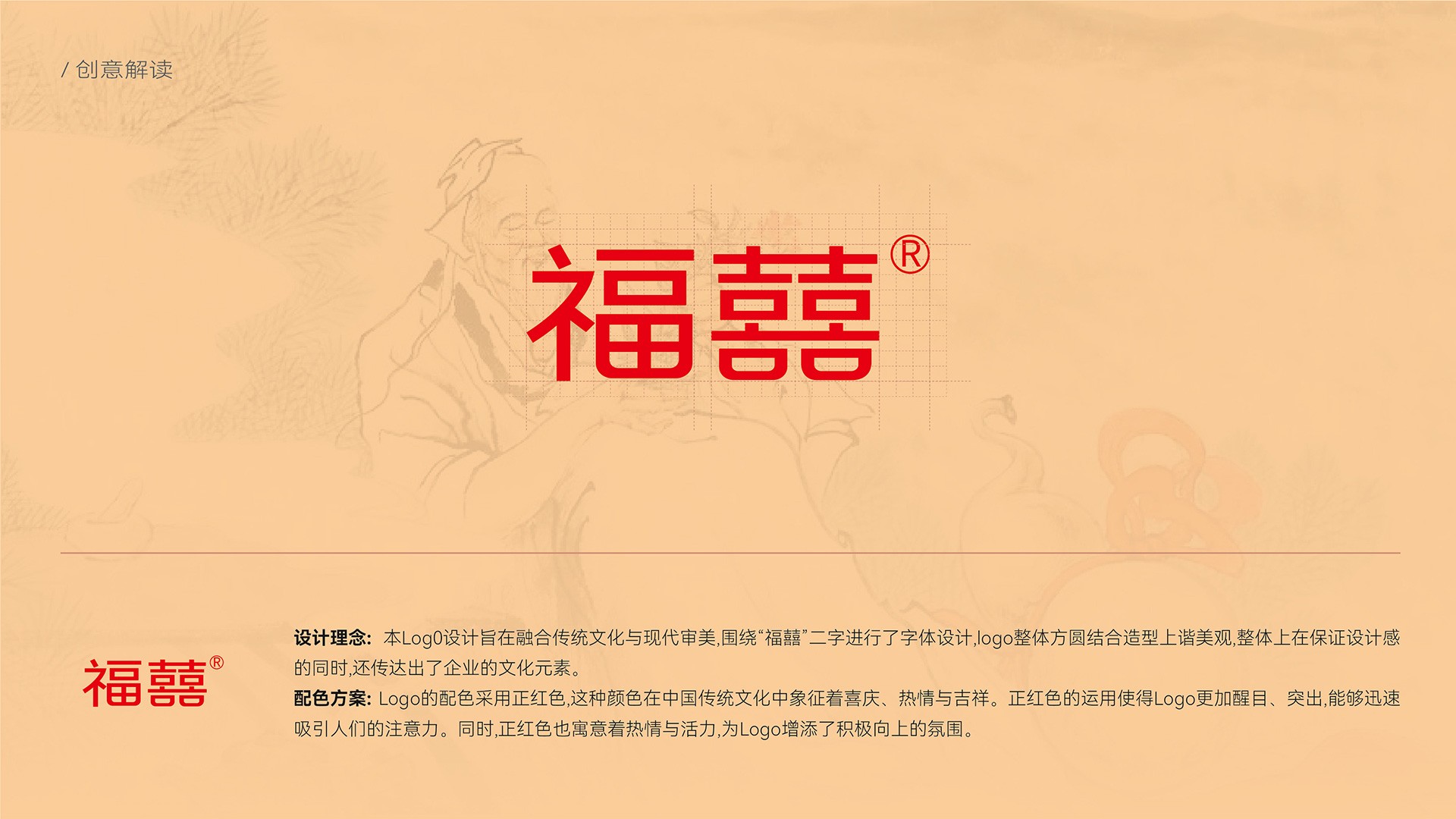 • LOGO設計: 將“福囍”二字進行巧妙的圖形化融合設計,確保字體標識莊重、大氣且具有獨特性,體現醫藥行業的可靠性與“福喜臨門”的美好寓意。