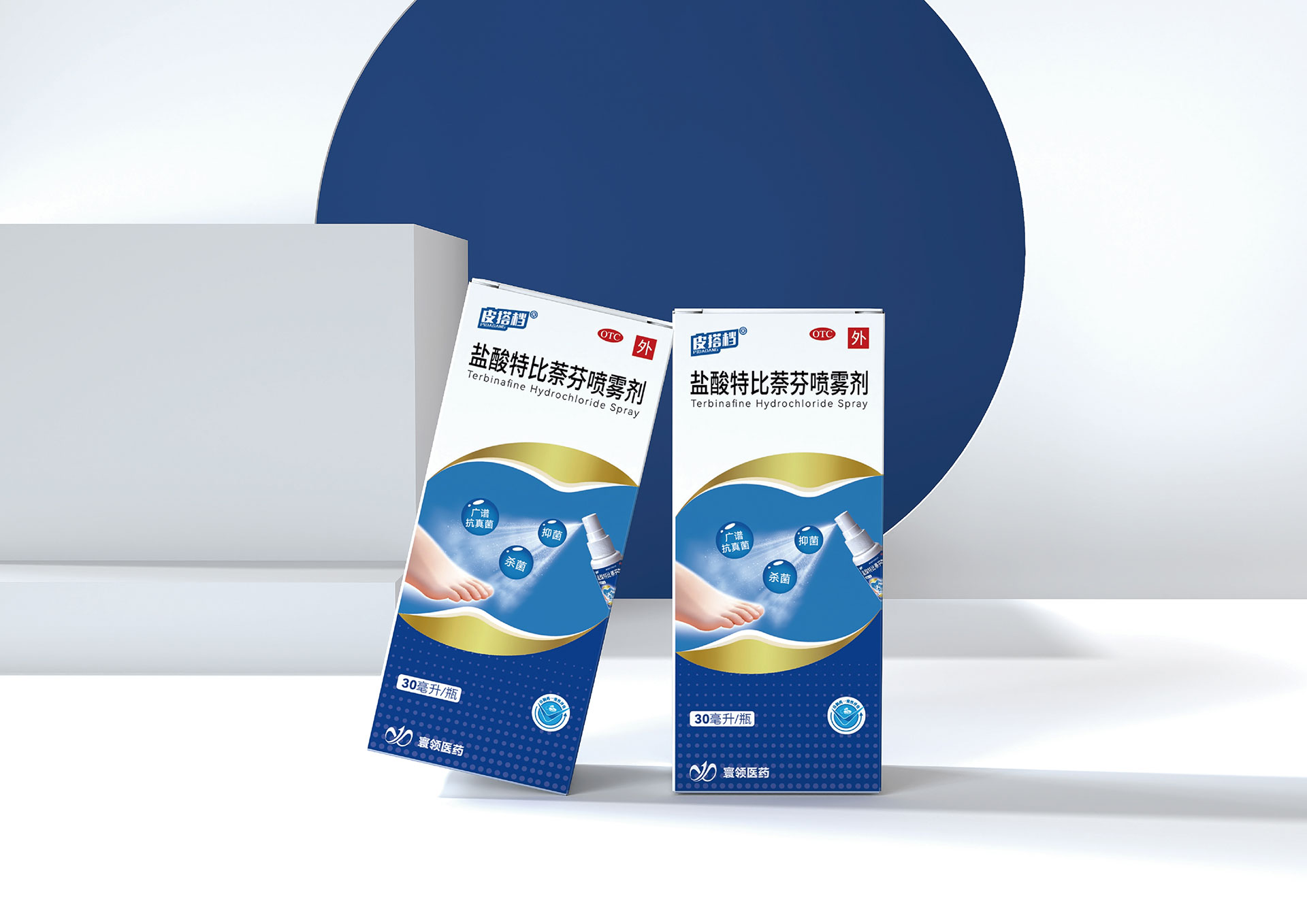 鹽酸特比萘芬噴霧劑系列:以活力橙為主識別色,象征抗真菌的強效與活力。